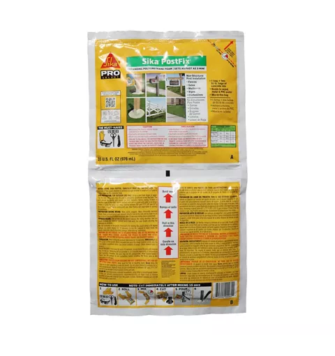 is a two-part, mix-in-the-bag, pre-proportioned polyurethane resin which when mixed produces an expanding foam. It has been specifically formulated and packaged to provide a lightweight, mix-in-the-bag, and fast-setting backfill for wooden, PVC and steel in-ground supports.