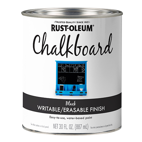 Rust-Oleum® Chalkboard spray paint and brush paint converts surfaces into a usable chalkboard. Apply to metal, wood, masonry, drywall, plaster, glass, concrete, unglazed ceramics and hardboard. Erases cleanly.